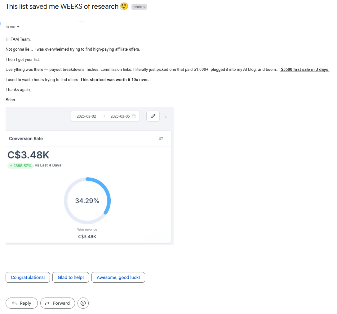 - Brian T. $3,500 in 3 DAYS